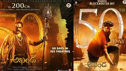 ఇక అఖండ మరో రకార్డ్ ను తన ఖాతాలో వేసుకుంది. 103 థియేటర్లలో 50 రోజులను పూర్తి చేసుకుంది. అంతే కాదు కలెక్షన్స్ విషయంలో 200 కోట్ల రూపాయల క్లబ్ లోకి చేరిపోయింది. అందుకు సంబంధించిన విషయాలను తెలియజేస్తూ సినిమా టీమ్ ఫుల్ జోష్ తో అఫీయషియల్ పోస్టర్స్ ను రిలీజ్ చేశారు.