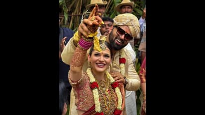 జంట చూడముచ్చటగా ఉందని అభిమానులు కూడా కామెంట్స్ పెడుతున్నారు. ఈ పెళ్లి వేడుకకి పునీత్ రాజ్ కుమార్ సతీమణి అశ్విని కూడా హాజరయ్యారు.