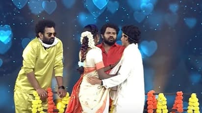 ఆ తర్వాత జబర్దస్త్ నటి ఫైమా, పటాస్ ప్రవీణ్ పెళ్లి బట్టల్లో బెడ్ పైకి వస్తారు. వీళ్లిద్దరి రొమాన్స్ చూడముచ్చటగా ఉంటుంది. రియల్ లైఫ్ లో కూడా వీరిద్దరూ లవ్ లో ఉన్నారు కాబట్టి బాగా రొమాన్స్ పండించారు.