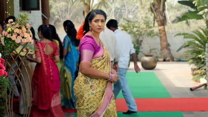 స్కెచ్ దీనితో వేదవతి ఈ టైంలో అపశకునం జరిగింది ఏంటి అని కంగారు పడుతుంది. ఇంతలో కామాక్షి, ఆమె భర్త, తిరుపతి మధ్య ఫన్నీ సీన్స్ జరుగుతాయి. అమ్మగారి ఇంట్లో దొరికిన వస్తువులు తీసుకువెళ్ళడానికి కామాక్షి పెద్ద సూట్కేస్ తీసుకురమ్మని భర్తకి చెబుతుంది. కానీ అతడు చిన్న సూట్కేస్ తీసుకురావడంతో కోపం వ్యక్తం చేస్తుంది.