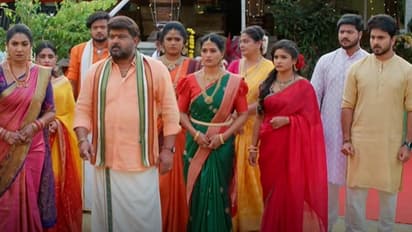 అమూల్య.. తన పేరెంట్స్ దగ్గరకు వెళ్తుంది.‘ నాన్న. చాలా పెద్ద తప్పు చేశాను నాన్న.. నన్ను క్షమించండి..’ అని రామరాజు కాళ్లు పట్టుకోవాలని అనుకుంటుంది.. కానీ రామరాజు వెనక్కి వెళ్లిపోతాడు. దీంతో.. తల్లి కాళ్ల మీద పడుతుంది. వేదవతి.. అమూల్య చెంప పగలకొడుతుంది. ‘ నువ్వెంత.. నీ వయసు ఎంత? లేచిపోయి పెళ్లి చేసుకునేంత పెద్దదానివి అయిపోయావా? వాడు నిన్ను ప్రేమ పేరుతో మోసం చేస్తున్నాడే.. గుడ్డిగా నమ్మి.. నీ జీవితాన్ని నాశనం చేసుకోకే అని దండం పెట్టి మరీ చెప్పాము... మా మాట వింటాను అని చెప్పి, మేము చూసిన సంబంధం చేసుకుంటాను అని మాట ఇచ్చి.. మిమ్మల్ని నడి వీధిలో నిలపెట్టావ్ ’ అంటూ..అమూల్యను దారుణంగా కొడుతుంది. వేదవతిని పెద్దమ్మ ఆపుతుంది.. ‘నీ ఇంట్లో కూతురు చేసింది తప్పు అయితే.. పాతికేళ్ల క్రితం నువ్వు చేసింది ఏంటి? మీరు పగలు, పంతాలతో కొట్టుకు చస్తున్నాసరే.. ఆ దేవుడు.. ఈ ఇంటి అమ్మాయిని.. మీ ఇంటి కోడలిగా..మీ ఇంటి అమ్మాయిని.. ఈ ఇంటి కోడలిగా చేశాడు.. అది అర్థం చేసుకొని.. ఇప్పటికైనా రెండు కుటుంబాలు కలవండి’ అని చెప్పి.. అమూల్యను పెద్దావిడ ఇంట్లోకి తీసుకువెళ్తుంది. ఇక.. పెళ్లి వాళ్లు.. రామరాజుని దారుణంగా తిట్టి.. అక్కడి నుంచి వెళ్లిపోతారు. తమ పేర్లు బయట పడనందుకు.. శ్రీ వల్లి సంతోషిస్తుంది.