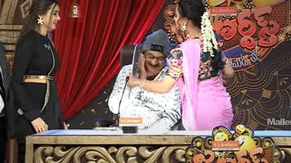 అంతలోనే పెద్ద ట్విస్ట్ ఇచ్చింది. అంతా ఆమె కృష్ణభగవాన్‌కి బుగ్గకి ముద్దు పెడుతుందనుకున్నారు. కానీ ఆమె ఆయన చేయిని తీసుకుని వేళ్లకి ముద్దు పెట్టింది. దీంతో అంతా షాక్‌ అయ్యారు. సౌమ్య రావు ఇంతటి సాహసం చేస్తుందా అని ఆశ్చర్యపోయారు. మొత్తం అందరు హో ఏసుకున్నారు. ఇదే హైలైట్‌ అంటే దాన్ని మించి మరో చిలిపి పని చేశాడు కృష్ణ భగవాన్‌. ఇలాంటి సందర్భాల్లో రెచ్చిపోయి కామెడీ చేసే ఆయన సౌమ్య రావు ముద్దు పెట్టిన తన చేతి వేళ్లకి అదే ప్లేస్‌లో తను ముద్దు పెట్టుకోవడం విశేషం.