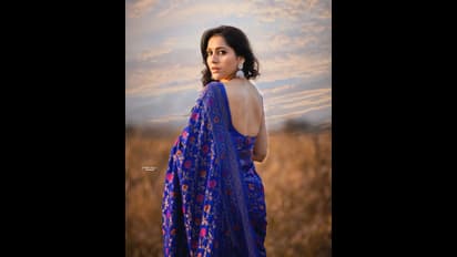 బ్యాక్‌ చూపిస్తూ చెమటలు పట్టిస్తున్న `జబర్దస్త్` రష్మి.. స్లీవ్‌ లెస్‌ బ్లౌజ్‌ బ్లూ శారీలో ఇంత హాట్‌గానా?