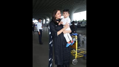 తాజాగా కాజల్ తన ముద్దుల కొడుకు నీల్ తో కలసి ఎయిర్ పోర్ట్ లో మెరిసింది.కాజల్ తో పాటు ఆమె కొడుకు కూడా అందరిని ఆకర్షించాడు. క్యూట్ గా ఉన్న నీల్ భలే కోపంగా కనిపించాడు.