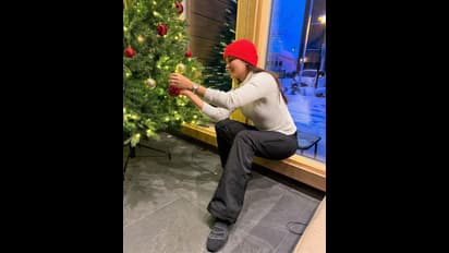 క్రిస్మస్‌ ట్రీని డెకరేట్‌ చేస్తూ కనిపించింది. క్యూట్‌గా పోజులిచ్చింది. తలపై రెడ్‌ హ్యాట్‌ ధరించింది. ముఖ్యంలో ఆనందం కనిపిస్తుంది. ఆనందమంతా తనలోనే ఉందనేలా ఆమె పోజులివ్వడం విశేషం.
