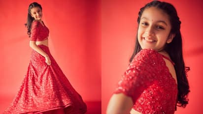 రెడ్ క్రాప్ టాప్ లెహంగాలో మెరిసింది స్టార్ కిడ్ సితార. దసరా పండగ పురస్కరించుకుని ఆమె ఇలా తయారయ్యారు. ఎరుపు ధైర్యానికి, విజయానికి ప్రతీక అట. అందుకే రెడ్ కలర్ డ్రెస్ ధరించిందట సితార. తన అభిమానులకు సితార తనదైన శైలిలో దసరా శుభాకాంక్షలు చెప్పింది.