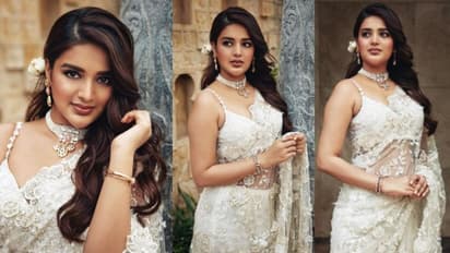 నిధి అగర్వాల్‌ బొద్దుగా మారింది. బాగా లావెక్కింది. ఓ రకంగా గుర్తు పట్టలేనట్టుగానూ మారిపోయింది. హాట్‌ అందాల వన్నెమాత్రం ఏమాత్రం తగ్గలేదు. అదే హాట్‌, అదే నాటు అనేలా ఉంది. స్లీవ్‌ లెస్‌ బ్లౌజ్‌లో వైట్‌ శారీలో కనువిందు చేస్తుంది. కొత్త ఫోటో షూట్‌తో నెటిజన్లకి మతిపోగొడుతుంది నిధి అగర్వాల్‌. ప్రస్తుతం ఆమె నయా ఫోటోలు సామాజిక మాధ్యమాల్లో వైరల్‌ అవుతున్నాయి. అయితే తమిళ సినిమా కోసం ఆమె బొద్దుగా మారినట్టు తెలుస్తుంది. Nidhhi Agerwal Hot Photos.