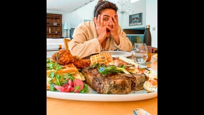 రెండు చేతులతో ముఖాన్ని కళ్ళని కప్పేసి ఓ కన్నుతో ఆ భోజనాన్ని చూస్తుంది. అంతేకాదు ఈ సందర్భంగా `నేను దీనితో ఏం చేయాలి?` అని పోస్ట్ పెట్టింది. ప్రస్తుతం ఈ ఫోటో సోషల్ మీడియాలో వైరల్ అవుతుంది.