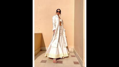ఈ సందర్భంగా రకుల్ ఆల్-వైట్ బ్రాలెట్ మరియు లెహంగా సెట్ను ధరించింది. ఈ డ్రెస్ లో రకుల్ మరింత హాట్ గా కనిపిస్తోంది. తన ఎద, నడుము అందాలు, నాభి కనిపించేలా డ్రెస్ అప్ అయ్యిందీ సుందరి. మరోవైపు హాట్ లుక్స్ తో కుర్రాళ్ల గుండెల్ని కదిలిస్తోంది. తన ఫొటోలకు ‘తెలుపుపై ప్రేమతో’అని క్యాప్షన్ ఇచ్చింది.