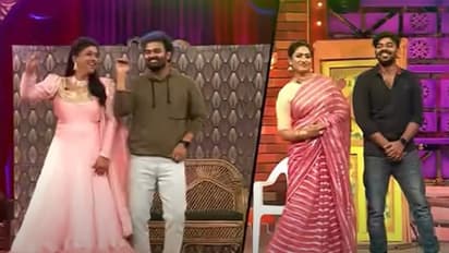 `ఆచార్య` చిత్రంలో లాహే లాహే.. పాటకి రోజా-రామ్‌ప్రసాద్‌, ఆమని-సుడిగాలి సుధీర్‌ జోడీగా స్టేజ్‌పైకి వచ్చారు. తమదైన స్టెప్పులతో అలరించారు. షోకి జోష్‌ని నింపారు. ఇందులో వచ్చీ రావడంతోనే రోజా ఏంట్రీ ఎందుకు పిలిచావ్‌, అని రాంప్రసాద్‌ని రోజా అడిగింది. అక్కా వాడుచూడు మనతో గొడపడుతున్నాడు అని సుడిగాలి సుధీర్‌ని చూపిస్తూ రాంప్రసాద్‌ రోజాకి చెప్పాడు.