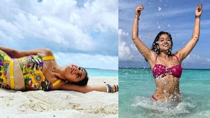ఈ క్రమంలో మాల్దీవులకు చేరుకున్న శ్రియా సరన్ టూపీస్ బికినీలో గ్లామర్ బాంబ్ పేల్చింది. పింక్ బికినీలో స్లిమ్ ఫిట్ అందాలను విందు చేస్తూ నెట్టింట రచ్చరచ్చ చేస్తోంది. బీచ్ లో చిందులేస్తూ కుర్రాళ్ల చూపును తనవైపు తిప్పుకుంటోంది.