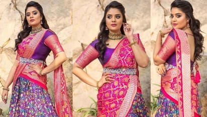 Sreemukhi Half Saree Pics: లెహంగా ఓనీలో `బోగి` మంటలు పుట్టిస్తున్న యాంకర్‌ శ్రీముఖి.. బ్యాక్‌ మైండ్‌ బ్లాక్‌