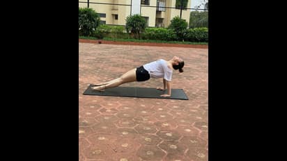 లాక్డౌన్లో జిమ్ సెంటర్కి వెళ్లడానికి కుదరదు కాబట్టి ఇంట్లో వర్కవుట్స్ పనికొచ్చే వస్తువులతోనే వ్యాయామాలు చేస్తున్నారామె.