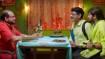 ఆ జోతిష్కుడు చెప్పిన మాటలను కూడా మనోజ్ నమ్మకుండా డౌట్ పడతాడు. అయితే.. తన మాటలు నమ్మకుంటే.. నీ పరిస్థితి దారుణంగా మారుతుందని..గుడి ముందు అడుక్కోవలసి వస్తుందని హెచ్చరిస్తాడు. మనోజ్ ఆల్రెడీ బ్లూ కలర్ షర్ట్ వేసుకుంటే.. దానిని విప్పమని.. ఓ కండువా ఇచ్చి కప్పుకోమంటాడు. తాను చెప్పిన రంగు దుస్తులు మాత్రమే వేసుకోవాలని మరీమరీ చెబుతాడు. మనోజ్ సరే అంటాడు. ‘ ఈ రంగులు వేసుకుంటే నిజంగానే నా సమస్య తీరిపోతుందా స్వామి’ అని మనోజ్ అడిగితే.. ‘ ఇలా నేను చెప్పినట్లు చేస్తే.. తర్వాత అంతా నీకు అనుకూలంగా ఉంటుంది. నువ్వు ఏమీ చేయకపోయినా నీకు కలిసొస్తుంది. కలిసొచ్చే కాలం వస్తే నడిచొచ్చే కొడుకు కూడా వస్తాడు’ అని అంటాడు. ఆ మాటలకు మనోజ్ సంబరపడిపోతాడు. తర్వాత స్వామిజీకి సెలవు అని చెప్పి అక్కడి నుంచి వెళ్లిపోతాడు.