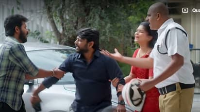 రోడ్డు మీద బాలు, మీనా సరదాగా గొడవపడుతూ ఉంటారు. బాలు కారులో ఉన్న వ్యక్తి మాత్రం తనకు పెళ్లి చూపులకు ఆలస్యం అవుతుందని టెన్షన్ పడుతూ ఉంటాడు. బాలు, మీనా మాత్రం అతన్ని పట్టించుకోకుండా గొడవ పడతారు. వీరి గొడవ చూసి ట్రాఫిక్ పోలీస్ వస్తాడు. రాంగ్ రూట్ లో వచ్చినందుకు ట్రాఫిక్ పోలీసు బాలుకి రూ.500 ఫైన్ వేస్తాడు. దీంతో.. మీనా వద్దు అని బతిమిలాడుతుంది. ఎందుకు వద్దు అని ట్రాఫిక్ పోలీసు అడిగితే.. ఆయన మా ఆయనే సర్ అని చెబుతుంది. దీంతో.. ఇద్దరినీ తిట్టేసి అక్కడి నుంచి వెళ్లిపోతాడు. ఇక ఆ పెళ్లి చూపుల అబ్బాయి కూడా అక్కడి నుంచి వెళ్లిపోతాడు.