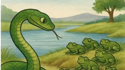 ‘ చాలా కప్పలు ఉన్నాయి.. అన్నింటినీ తినేస్తే నా ఆకలి మొత్తం తీరిపోతుంది’ అని అనుకుంటుంది. వెంటనే.. ఆ కప్పలను తినడానికి వెళ్తుంది. కానీ... చిన్న అనుమానం వచ్చి ఆగిపోతుంది. ‘నాలుగైదు కప్పలు మాత్రమే నేను మింగగలను. మిగిలిన కప్పలన్నీ పారిపోతాయి కదా అప్పుడు అన్ని కప్పలను తినలేను కదా, కాసేపు ఆగి.. కప్పలన్నీ నిద్రపోయాక తిందాం’ అనుకొని పాము ఆగిపోతుంది.
