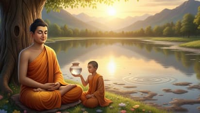 బుద్ధుడు చిరునవ్వుతో, “ఏం పర్లేదు, కొంతసేపు వేచి చూడు. ఆ తర్వాత వెళ్లి నీరు తీసుకురా” అని చెప్తారు. దీంతో శిష్యుడు.. అదేంటి మురికిగా ఉన్న నీరును కాసేపు ఆగి తీసుకురమ్ముంటున్నారని ఆలోచిస్తాడు. కొంత సమయం గడిచిన తరువాత ఆయన మళ్లీ, “ఇప్పుడు వెళ్లి నీళ్లు తెచ్చి చూడు” అన్నారు. శిష్యుడు వెళ్లి చూశాడు — ఈసారి నీరు స్వచ్ఛంగా, అద్దంలా కనిపించింది.