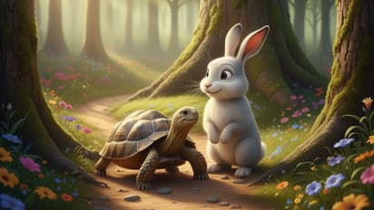 ఒకప్పుడు ఒక అడవిలో కుందేలు, తాబేలు ఇద్దరూ మంచి స్నేహితులుగా ఉండేవారు. కుందేలు చాలా వేగంగా పరుగెత్తగలదు. అందుకే అది తాను ఎంత వేగంగా ఉన్నానో గర్వంగా చెప్పుకునేది. తాబేలు మాత్రం నెమ్మదిగా నడిచేది.