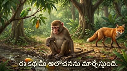 ఆశతో తిందామనుకున్న పండ్లు మురికి కాలువలో పడడంతో కోతి ఒక్కసారిగా నిరాశకు గురవుతుంది. ఆహారం చేతికి అందకుండా పోయిందని బాధపడింది. నక్క మాత్రం తన పని అయిపోయిందని అక్కడి నుంచి నిశ్శబ్దంగా వెళ్లిపోయింది. అది చూసిన దగ్గర్లోని చెట్టుపై ఉన్న ఒక చిలుక కోతితో మాట్లాడుతూ.. “నీకు చెట్టు ఎక్కడం బాగా వచ్చు. అయినా నువ్వు నీకు తెలిసిన పనిని వదిలి నక్క చెప్పిన మాట విన్నావు. అందుకే ఈ పరిస్థితి వచ్చింది” అని అంది.