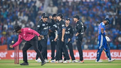 శివమ్ దూబే ఒకవైపు దాడి చేస్తున్నప్పటికీ, మరోవైపు న్యూజిలాండ్ స్పిన్నర్లు పట్టు బిగించారు. ముఖ్యంగా కివీస్ కెప్టెన్ మిచెల్ సాంట్నర్ అద్భుతమైన బౌలింగ్తో భారత బ్యాటింగ్ వెన్ను విరిచాడు. సాంట్నర్ తన స్పెల్లో 26 పరుగులు మాత్రమే ఇచ్చి 3 కీలక వికెట్లు పడగొట్టాడు. సంజూ శాంసన్, హార్దిక్ పాండ్యా వంటి కీలక ఆటగాళ్లు భారీ షాట్లకు ప్రయత్నించి సాంట్నర్ బౌలింగ్లో అవుట్ కావడంతో భారత్ కోలుకోలేకపోయింది.