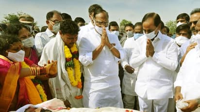 అంత్యక్రియలు జరిగే ప్రాంతానికి టీఆర్ఎస్ నేతలతో కలిసి వచ్చిన కేసీఆర్