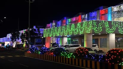 నైట్ టైమ్ లో బుద్దుడు విగ్రహం త్రివర్ణ రంగులతో మెరిసింది.