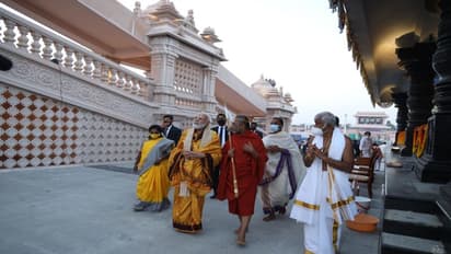 శనివారం ముచ్చింతల్లో జరిగిన రామానుజ సహస్రాబ్ధి సమారోహం వేడుకల్లో ప్రధాని నరేంద్ర మోడీ పాల్గొన్నారు. యాగశాల వద్ద ప్రధానిని ఆశీర్వదిస్తున్న చినజీయర్ స్వామి, వేదపండితులు