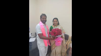 కల్వకుంట్ల కవితకు పుష్ఫగుచ్చం అందించి పుట్టినరోజు శుభాకాంక్షలు తెలియజేస్తున్న అందోల్ ఎమ్మెల్యే క్రాంతి కిరణ్