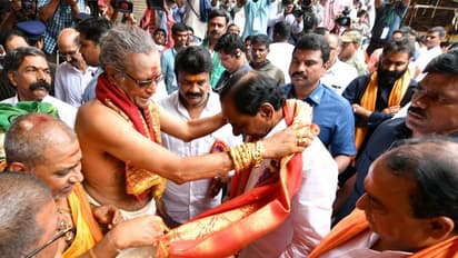 సీఎం కేసీఆర్కు ఘనస్వాగతం పలుకుతున్న వేదపండితులు