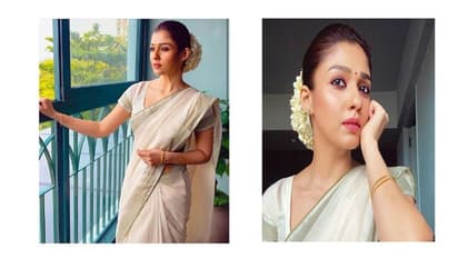 తాజాగా.. నయనతార తన సోషల్ మీడియాలో చీర కట్టుకున్న ఫోటోలను షేర్ చేశారు. క్రీమ్ కలర్ శారీ.. దానికి బంగారు అంచు ఉన్న చీరలో ఆమె చాలా అందంగా కనపడుతున్నారు.