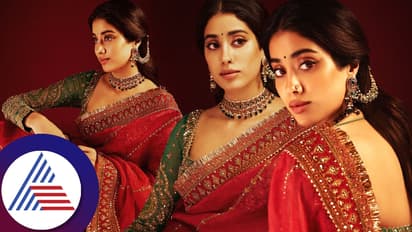 జాన్వీకి చాలా ఇష్టం అయిన మనీష్ మల్హోత్రా డిజైన్ చేసిన ఈ చీరలో జాన్వీ అందంగా కనిపించింది. అది కూడా ఎరుపు-ఆకుపచ్చ కలగలిసిన సారీ కావడంతో అందరినీ మంత్ర ముగ్ధులను చేసింది.