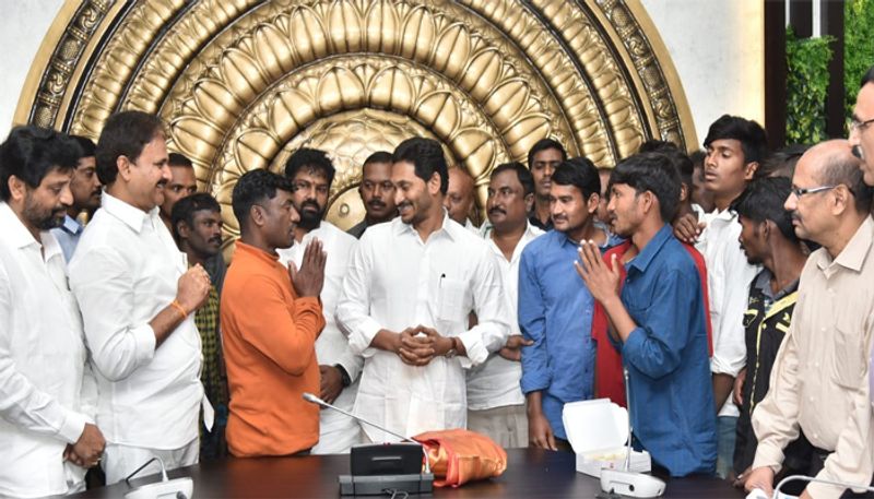 అమరావతి: పాక్ జైలు నుంచి మంగళవారం విడుదలైన ఆంధ్ర ప్రదేశ్ కు చెందిన మత్స్యకారులు బుధవారం ఉదయం ముఖ్యమంత్రి వైఎస్ జగన్ ను కలుసుకున్నారు.