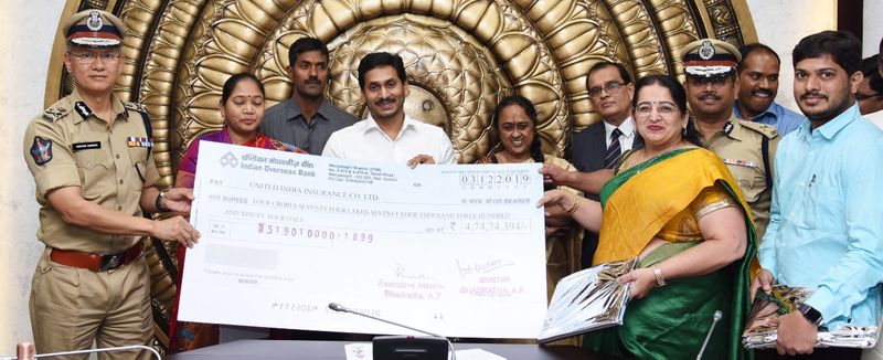 క్యాంపు కార్యాలయంలో నిర్వహించిన కార్యక్రమంలో ముఖ్యమంత్రి జగన్ సమక్షంలో ప్రభుత్వం, పోలీసు శాఖల తరఫున యునైటెడ్ ఇండియా ఇన్సూరెన్స్ కంపెనీకి రూ. 4.74 కోట్లను చెల్లించారు. ఈ గ్రూపు ఇన్సూరెన్స్తో పాటు ప్రమాదవశాత్తు పోలీసులకు ఏదైనా జరిగితే దాని కింద చెల్లించే బీమాను గణనీయంగా పెంచారు.
