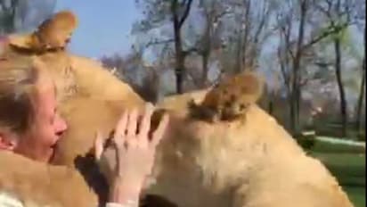 ఆ సింహాలు ఆమెను మర్చిపోనే లేదు (వీడియో)