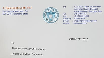 ఇక రాజస్థాన్, మద్య ప్రదేశ్, ఉత్తర ప్రదేశ్ రాష్ట్రాలు ఈ సినిమాను నిషేదిస్తున్నట్లు ఇప్పటికే ప్రకటించారు. ఇదే విధంగా తెలంగాణ ప్రభుతవం కూడా ఈ సినిమాను బ్యాన్ చేయాలంటూ రాజాసింగ్ సీఎంకు రాసిన లేఖలో పేర్కొన్నాడు. వీర వనిత పద్మిణి జీవిత చరిత్రను వక్రీకరించేలా ఈ సినిమాను తీర్చిదిద్దారని, ఆమె హిందూ ధర్మానికి చెందిన మహిళ కావడంతోనే ఇలా చేశారని ఆయన పేర్కొన్నాడు. ఈ సినిమాలోని అభ్యంతరకర సన్నివేశాలను తొలగించే వరకు ఈ సినిమా తెలంగాణలో విడుదల కానివ్వకుండా చూడాలని కేసీఆర్ ను కోరారు ఎమ్మెల్యే రాజాసింగ్.