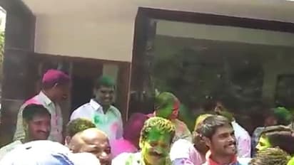 కాంగ్రెస్ నాయకులు, కొడంగల్ ఎమ్మెల్యే రేవంత్ రెడ్డి తన నివాసంలో హోళీ వేడుకలు ఘనంగా జరుపుకున్నారు. పండగ సందర్భంగా తమ ప్రియతమ నాయకుడితో హోళీ ఆడాలని ఇంటికి వచ్చిన కార్యకర్తలతో ఉత్సాహంగా వేడుకలను జరుపుకున్నారు. కాంగ్రెస్ కార్యకర్తలకు, తన సన్నిహితులకు రంగులు పూస్తూ ఉత్సాహంగా గడిపారు. ఈ రంగోళి వేడుకల్లో మరో కాంగ్రెస్ ఎమ్మెల్యే సంపత్ కూడా పాల్గొన్నారు.