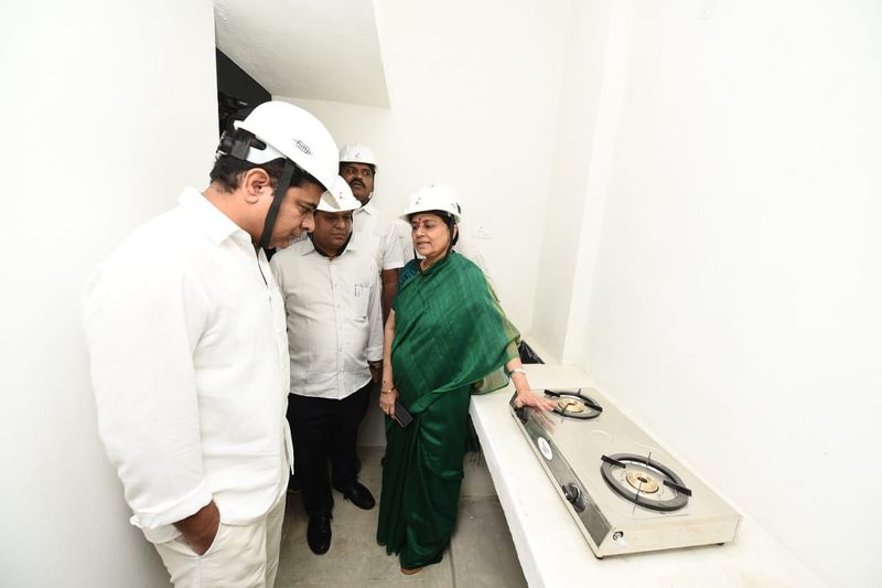 ఈ సందర్భంగా ఇక్కడ జరుగుతున్న పనులను పరిశీలించారు. నిర్మాణం పూర్తయిన ఇళ్లలోకి వెళ్లి ఒక డబుల్ బెడ్ రూమ్ ఇంటిని మంత్రి కేటీఆర్ స్వయంగా పరిశీలించడంతో పాటు ఇతర పనుల వివరాలు అడిగి తెలుసుకున్నారు.