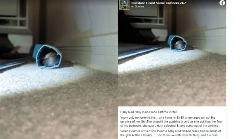 క్వీన్స్ల్యాండ్కు చెందిన యువతికి ఆస్తమా ఉండటంతో ఆమె ఇన్హేలర్ ఉపయోగిస్తోంది. ఇన్హేలర్ను వాడి పక్కన పెట్టిన సమయంలో ఎటునుంచి వచ్చిందో తెలియదు కానీ ఓ పాము పిల్ల వచ్చి ఇన్హేలర్ లోపలకు దూరింది.