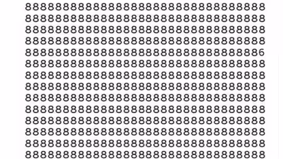 ఇక్కడ ఇచ్చిన చిత్రంలో అన్ని చోట్ల ఎనిమిదే ఉంది. కాబట్టి మీ కళ్లు, మెదడు కలిసి ఆ ఎనిమిది అంకెతోనే నిండిపోయి ఉంటాయి. ఆ మధ్యలో ఇరుక్కున్న ఆరును కనిపెట్టలేరు. కాబట్టి అసాధారణమైన ఏకాగ్రతతో మీరు ఆ ఆరును కనిపెట్టాలి. ఇక జవాబు విషయానికి వస్తే ఇప్పటికే ఆరు సంఖ్యను 10 సెకన్లలో కనిపెట్టిన వారికి కంగ్రాట్స్. కనిపెట్టలేక ఇబ్బంది పడుతున్న వారికి మేమే జవాబు చెప్పేస్తున్నాం. ఈ ఆప్టికల్ ఇల్యూషన్ లో చివరి నిలువ వరుసలో ఐదో అడ్డు వరుసలో ఈ ఆరు అనే అంకె ఉంది. అదే జవాబు.