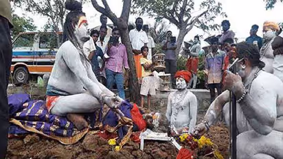 భౌతికకాయానికి ప్రత్యేక పూజలు చేస్తూ.. ఊరేగింపుగా శ్మశానవాటికకు తీసుకెళ్లారు. అక్కడ మణికంఠన్ తన తల్లి శవంపై కూర్చున్నాడు. అతడు పెద్ద పెద్ద కేకలు వేస్తూ.. చిత్రవిచిత్రమైన పూజలు చేస్తుంటే.. అతడి అనుచరులు ఢమరుకం వాయిస్తూ, శంఖం ఊదుతూ పెద్ద పెట్టున శబ్దాలు చేశారు. ఆతర్వాత తల్లి భౌతికకాయానికి దీపారాధనలు చేసి ఖననం చేశారు.