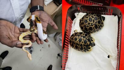 బ్యాగ్ తెరవగానే బ్యాగులలో అరుదైన జీవులు కనిపించాయి. వాటిలో 45 బాల్ పైథాన్లు, మూడు కుచ్చుతోక కోతులు, మూడు నక్షత్ర తాబేళ్లు, ఎనిమిది కార్న్ స్నేక్స్ బయటపడ్డాయి. అధికారులు వాటిని సీజ్ చేసి తిరిగి బ్యాంకాక్కు పంపించారు.