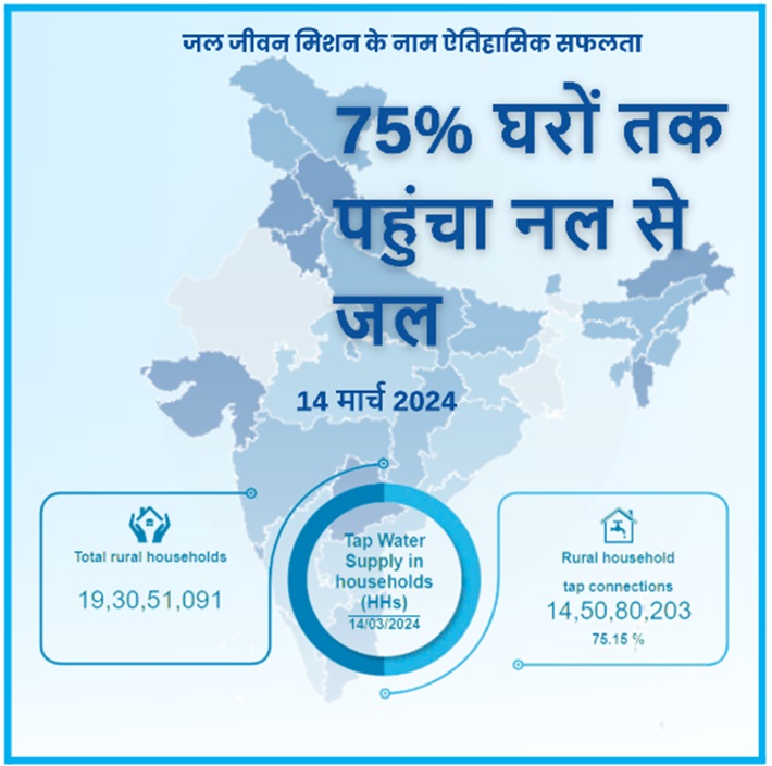 మార్చి 7, 2024న, ఈ మిషన్ ఒక చారిత్రాత్మక విజయాన్ని సాధించింది. "హర్ ఘర్ జల్" మిషన్ కింద, భారతదేశంలోని 75 శాతం కుటుంబాలకు పంపు నీటిని విజయవంతంగా అందిస్తోంది. జల్ జీవన్ మిషన్ ద్వారా గ్రామీణ ఇళ్లకు కుళాయి నీటిని అందిస్తున్నారు. 2019 వరకు 3 కోట్ల 23 లక్షల గ్రామీణ ఇళ్లకు మాత్రమే కుళాయి నీరు చేరుతోంది. 4 సంవత్సరాలలో, ఇప్పుడు 14 కోట్ల 50 లక్షలకు పైగా గ్రామీణ గృహాలకు కుళాయి నీరు చేరుతోంది.
