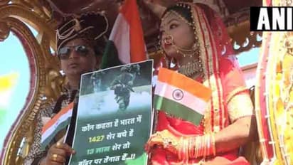 దేశంలో కేవలం 1427 పులులు మాత్రమే ఉన్నాయని ఎవరు అన్నారు. 13 లక్షల పులులు దేశ సరిహద్దులో కాపలా కాస్తున్నాయని ఆ ఫ్లకార్డులో పేర్కొన్నారు. పెళ్లి కొడుకు, పెళ్లి కూతురే కాకుండా వివాహ వేడుకకు హాజరైన ప్రతి ఒక్కరు జాతీయ జెండాను చేతపట్టుకుని జవాన్లకు నివాళులర్పించారు.