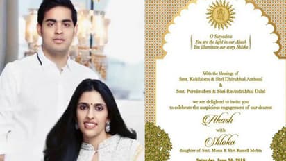 సూర్యదేవా.. ‘ఆకాశ్’ లో వెలుగు, ‘శ్లోక’లో మెరుపు (వీడియో) 30th June 2018. The invite is out for Akash Ambani and Shloka Mehta's engagement 💍✨🎇🎆 . . . . #TheStyleStamp #IGotStamped #AkashAmbani #ShlokaMehta #AmbaniWedding #Engagement #engagementInvite #WeddingInvite #WeddingInviteDesign #InviteIdeas #WeddingBells #WeddingOfTheYear #LuxuryWedding #IndianWedding #BrideToBe #GroomToBe #VOTD #VideoOfTheDay #Videogram #InstaVid #IgVideo #IndianBride #WeddingAnnouncement #VideoInvite A post shared by TheStyleStamp (@thestylestamp) on Jun 5, 2018 at 6:26am PDT