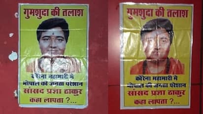 కనబడకుండా పోయిన తమ ఎంపీ సాధ్వి ప్రగ్య ఠాకూర్ కోసం వెదికి పట్టుకోమని కోరుతున్నారు భోపాల్ నియోజికవర్గ ప్రజలు. భోపాల్ ఎంపీ సాధ్వి ప్రగ్య ఠాకూర్ కనబడకుండా పోయిందని పేర్కొంటు భోపాల్ అంతా పోస్టర్లను అంటించారు.