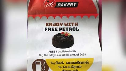 చెన్నై: పెట్రోల్ ధరలు రోజురోజుకు పెరుగుతూ వినియోగదారులకు చుక్కలు చూపిస్తుంటే దాన్ని క్యాష్ చేసుకునేందుకు సంస్థలు కొత్త ఎత్తులు వేస్తున్నాయి. వినియోగదారులను ఆకట్టుకునేందుకు చెన్నైలోని ఓ బేకరీ సంస్థ వినూత్న ఆఫర్ ప్రకటించింది. ఒక కిలో కేక్ కొంటే లీటరు పెట్రోలు ఫ్రీ అంటూ ఆ బేకరీ ఆఫర్ ప్రకటించింది.