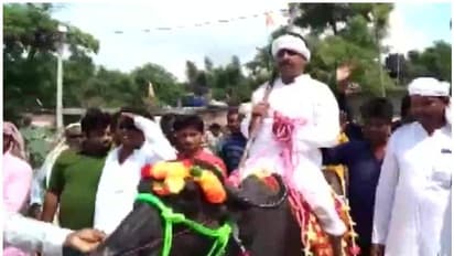 పాట్నా: దేశవ్యాప్తంగా పెట్రోల్, డీజిల్ ధరలపై నిత్యం నిరసనలు వెల్లువెత్తుతూనే ఉన్నాయి. చమురు ధరలు ఆకాశాన్నంటుతున్నాయి. ఫలితంగా నిత్యావసర ధరలూ క్రమంగా పెరుగుతున్నాయి. వీటిపై వినూత్న నిరసనలు వస్తున్నాయి. బిహార్లో ఇలాంటి ఘటనే వెలుగులోకి వచ్చింది. పంచాయతీ ఎన్నికల్లో నామినేషన్ వేయడానికి ఓ అభ్యర్థి దున్నపోతును ఎంచుకున్నాడు. పెట్రోల్, డీజిల్ను కొనుగోలు చేయడం తనతో కాదని, అది తన శక్తికి మించినదని సదరు అభ్యర్థి పేర్కొన్నారు. అందుకే నామినేషన్ వేసి రావడానికి దున్నపోతును వాహనంగా ఎంచుకున్నట్టు సెలవిచ్చారు.