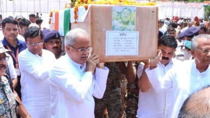 ఛత్తీస్గఢ్లోని దంతెవాడ జిల్లాలో బుధవారం రోజున మావోయిస్టులు జరిపిన పేలుడులో 10 మంది జవాన్లు, ఒక సివిల్ డ్రైవర్ మరణించిన ఘటన తీవ్రంగా కలిచివేసిన సంగతి తెలిసిందే. దంతేవాడ జిల్లాలోని కర్లీ ప్రాంతంలోని పోలీస్ లైన్స్లో మృతుల భౌతిక కాయాలకు గురువారం పలువురు ప్రముఖులు నివాళులర్పించారు. వారి భౌతికకాయాల వద్ద పుష్పగుచ్ఛాలను ఉంచారు. ఛత్తీస్గఢ్ సీఎం భూపేష్ బఘేల్ కూడా మృతుల భౌతికకాయాలకు నివాళులర్పించారు. రాష్ట్ర హోం మంత్రి తామ్రధ్వాజ్ సాహు, ఎంపీలు దీపక్ బైజ్, ఫూలోదేవి నేతమ్, రాష్ట్ర డీజీపీ అశోక్ జునేజా మృతులకు నివాళులర్పించారు. బాధిత కుటుంబాలను పరామర్శించారు. జవాన్ల మృతదేహాలను స్వస్థలాలకు తరలిస్తున్న వాహనం వద్దకు తీసుకెళ్తున్న సమయంలో.. ఓ జవాన్ శవపేటికను సీఎం భూపేష్ బఘేల్ తన భుజాలపై మోశారు. ఇతరులతో కలిసి శవపేటిన వాహనం వద్దకు చేర్చారు.