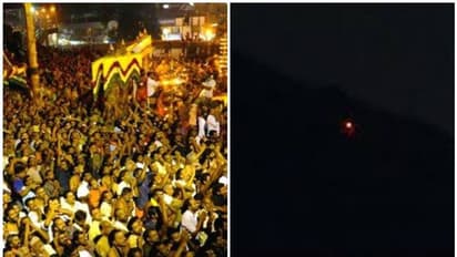 తిరువనంతపురం: శబరిమలలో సోమవారం నాడు మకర జ్యోతి భక్తులకు దర్శనమించ్చింది. మకర జ్యోతి దర్శనం కోసం లక్షలాది మంది భక్తులు సోమవారం నాడు ఆలయ పరిసరాలకు చేరుకొన్నారు.