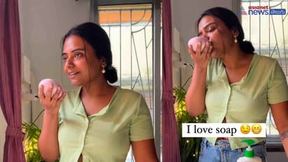 ప్రపంచంలో మనకు తినడానికి చాలా రకాల ఫుడ్స్ ఉన్నాయి. ఎవరికి నచ్చిన ఫుడ్స్ వారు తింటూ ఉంటారు. కొందరికి విటమిన్ లోపం , లేదా కొన్ని జబ్బుల కారణంగా కొందరు వింత వింత ఆహారం తింటూ ఉంటారు, మట్టి, పిన్నీసులు లాంటివి మింగేవారు కూడా ఉన్నారు. అయితే, తాజాగా ఓ అమ్మాయి సోషల్ మీడియాలో ఓ వీడియో షేర్ చేసింది. దాంట్లో ఓ చేతితో హ్యాండ్ వాష్, మరో చేతిలో సబ్బు పట్టుకొని ఉంది. ఈ రెండింటిలో ఏది రుచిగా ఉంటుందో మీకు చెబుతాను అంటూ వీడియో మొదలుపెట్టింది.